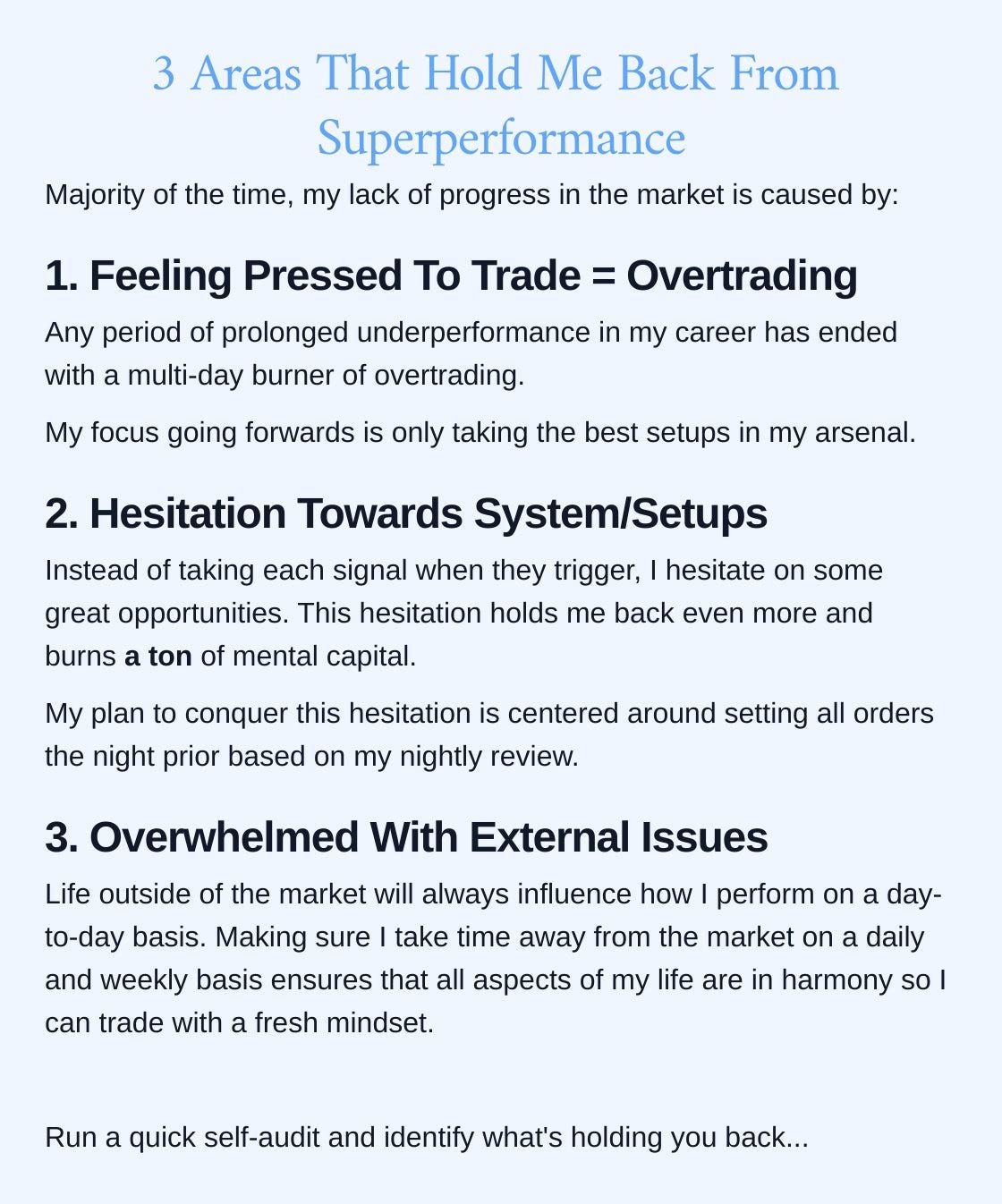 But, of course, I’ve realized the discipline picture isn’t complete just by mastering sit-out power. You also have to master execution discipline:
